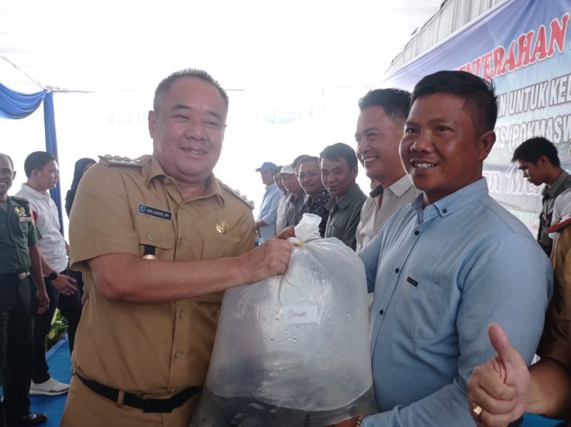 Lahat, SUMSEL – MLCI – Dinas Perikanan Kabupaten Lahat berhasil menyerah 3 juta bibit ikan dan pakan ikan kepada 28 kelompok Budidaya Ikan dan Kelompok Masyarakat Pengawas di Kabupaten Lahat Tahun 2023, Swasewada Ikan Menuju Lahat Bercahaya. Penyerahan diberikan langsung oleh Bupati Lahat H Cik Ujang SH didampingi oleh Wakil Bupati Lahat H Haryanto SE MM MBA, Ketua TP PKK Kabupaten Lahat Hj Lidyawati Cik Ujang S HUT MM dan Ketua GOW Hj Sumiyati Haryanto, kegiatan berlangsung di Halaman Lapangan Kantor Perikanan Kabupaten Lahat, selasa (15/08/23).