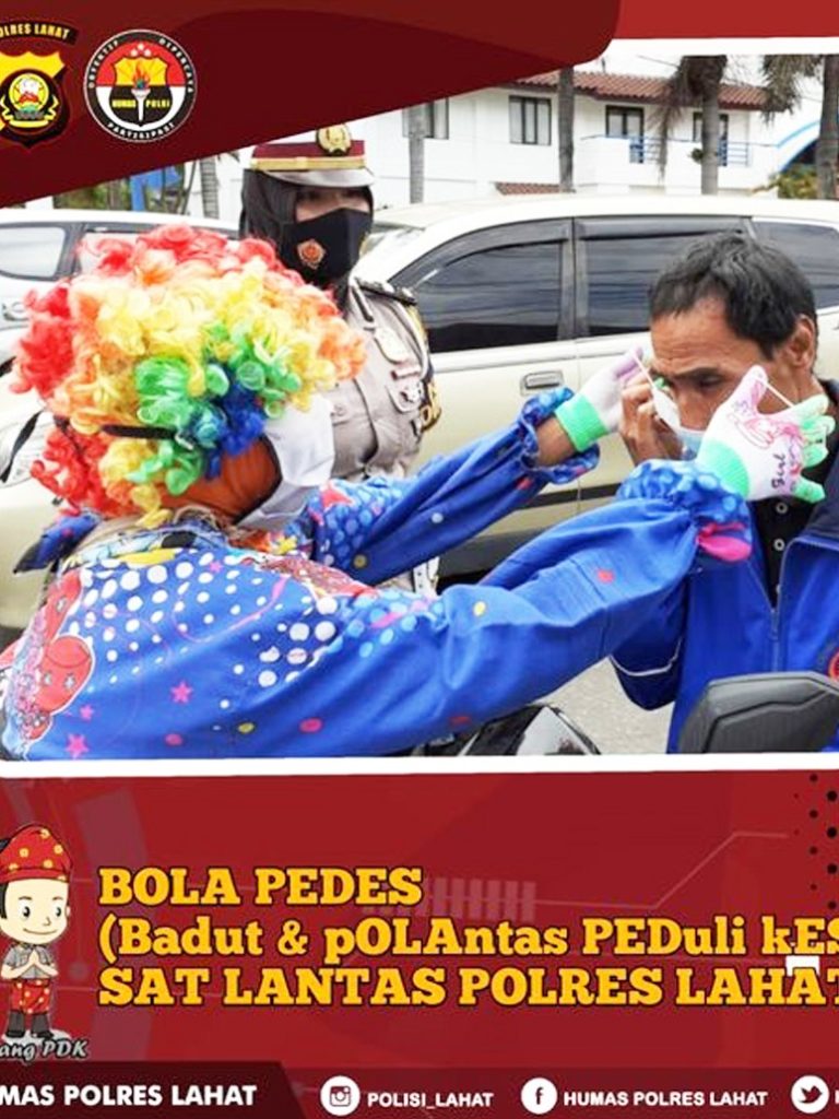 LAHAT SUMSEL, MLCI – Terobosan Satuan Lalu Lintas (Satlantas) Polres Lahat “Bola Pedes” Badut pOLAntas dan PEDuli kESehatan yang dilakukan personelnya untuk mengurangi penyebaran Virus Covid-19 di Kabupaten Lahat.