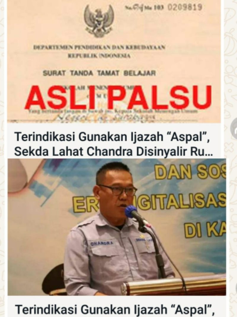 Pasalnya, dirinya terindikasi telah menggunakan Ijazah Strata Satu (S1) Jurusan Hukumnya merupakan ijazah yang didapat dengan cara tidak sesuai prosedur perkuliahan pada umumnya atau Ijazah Asli tapi Palsu alias “(Aspal)”. Terlebih, Chandra yang saat menempuh pendidikan S1 di salah satu perguruan tinggi swasta di Palembang tersebut ketika dirinya aktif sebagai Aparatur Sipil Negara (ASN) di lingkungan Pemkab Lahat.