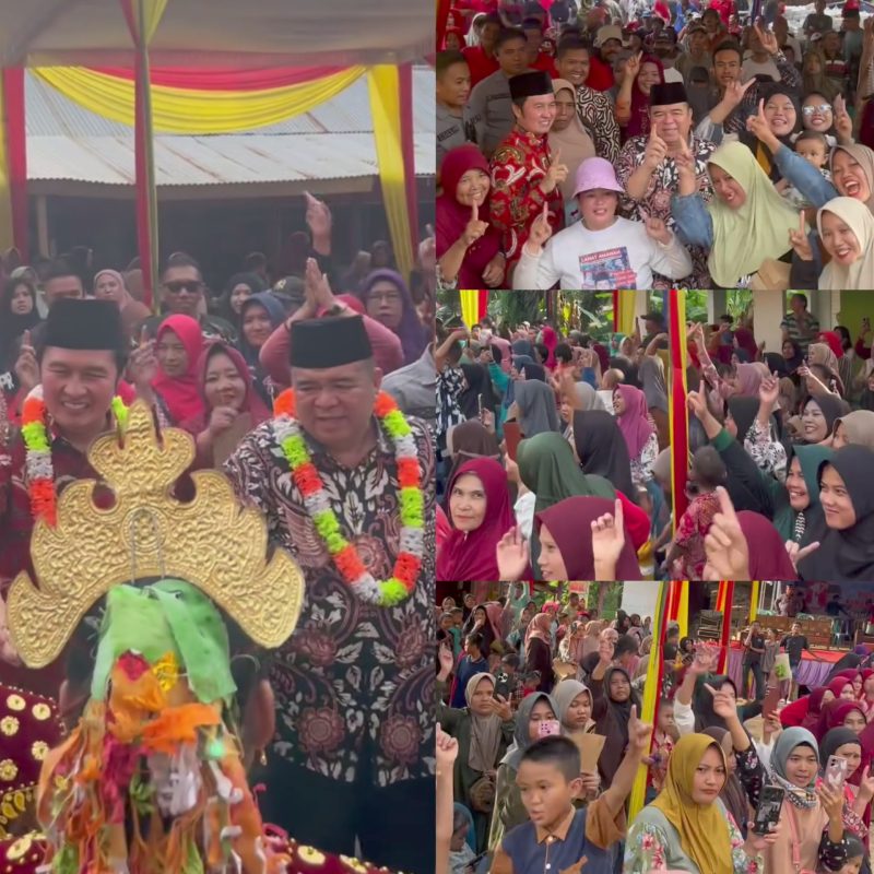 Terbukti kedatangan YM-BM disambut penuh antusias oleh ratusan masyarakat dengan dipasangkan kalung bunga dan tarian budaya serta pergelaran seni budaya Kuda Kepang.
