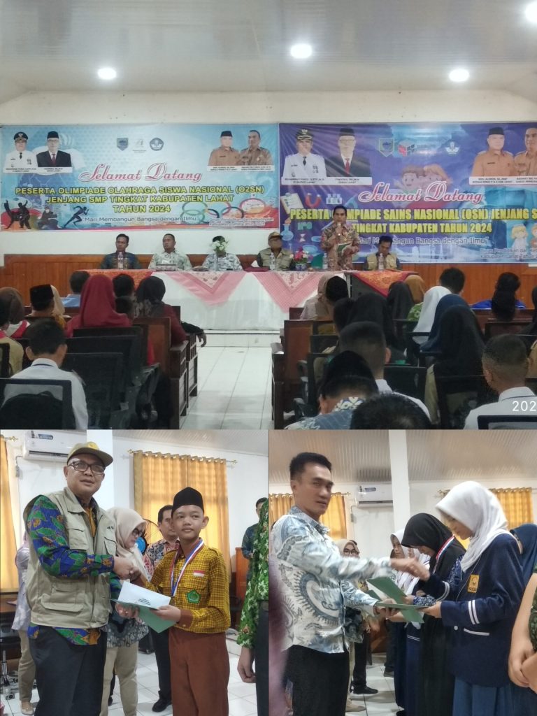 LAHAT SUMSEL – MLCI – Pemerintah Kabupaten Lahat melalui Dinas Pendidikan dan Kebudayaan (DISDIKBUD) menggelar penyerahan reward Peserta Olimpiade olahraga siswa nasional (O2SN) Dan Olimpiade Sains Nasional (OSN) jenjang SMP Tingkat Kabupaten Lahat Tahun 2024, kamis 18 Juli 2024.