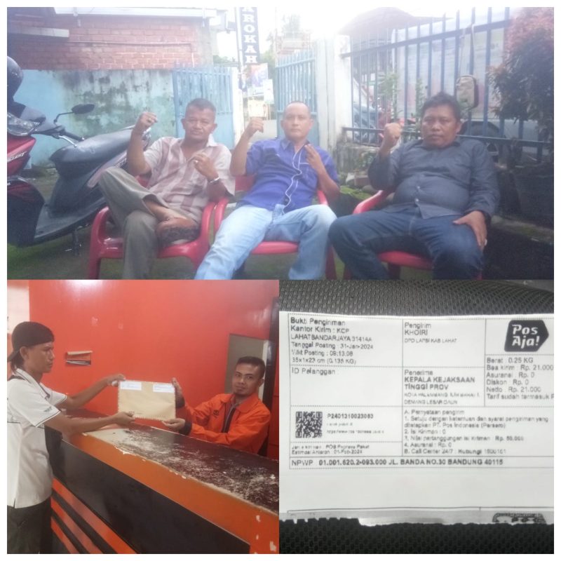 Hari ini, Rabu 31 Januari 2024. salah satu perwakilan DPD LSM Lapsi Resmi mengirim Surat ke Kejati Sumsel Melalui KCP Lahat Bandar Jaya 31414A.