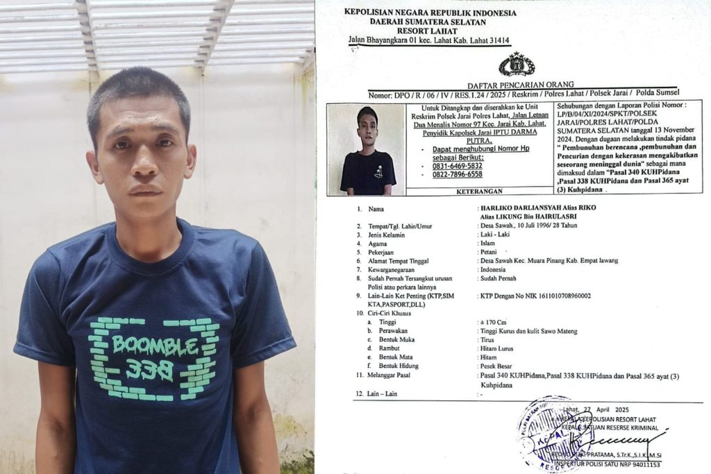 “Sat Reskrim Polres Lahat telah menerbitkan Surat Daftar Pencarian Orang atau DPO atas nama Harliko Darliansyah alias Riko usia 28 tahun berprofesi petani, dan berasal dari Desa Sawah, Kecamatan Muara Pinang Kabupaten Empat Lawang,” jelas Lispono.