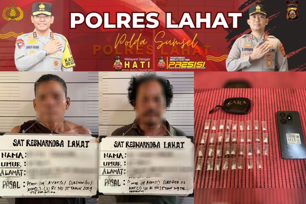 LAHAT SUMSEL, MLCI – Team Walet Satuan Reserse Narkoba Polres Lahat berhasil menangkap dua pengedar sabu jaringan narkotika Jalan Lintas PT Servo angkutan batubara KM 107, tepatnya di Desa Muara Lawai Kecamatan Merapi Timur.