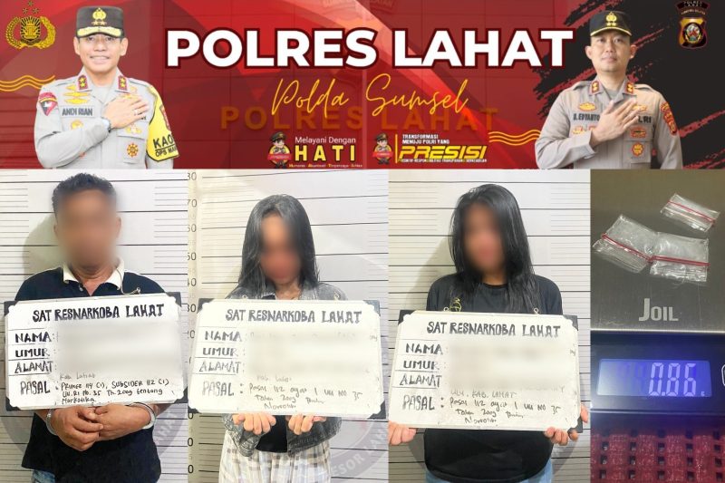 Ketiga tersangka tersebut yakni HS (44) laki-laki warga Desa Karang Anyar Kecamatan Lahat Selatan, YW (30) wanita warga Desa Tinggi Hari Kecamatan Gumay Ulu dan RA (29) wanita warga Desa Sido Makmur Kecamatan Kikim Barat.