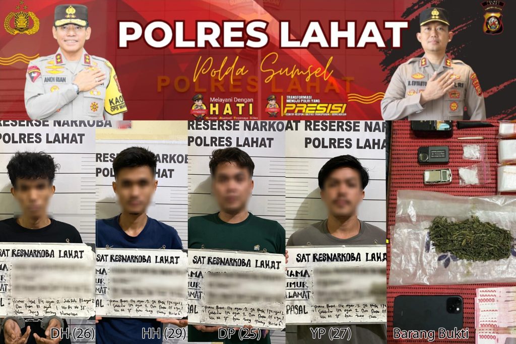 Kini keempat terduga pelaku dan barang bukti telah berada di Sat Resnarkoba Polres Lahat untuk dilakukan pemeriksaan lebih lanjut.