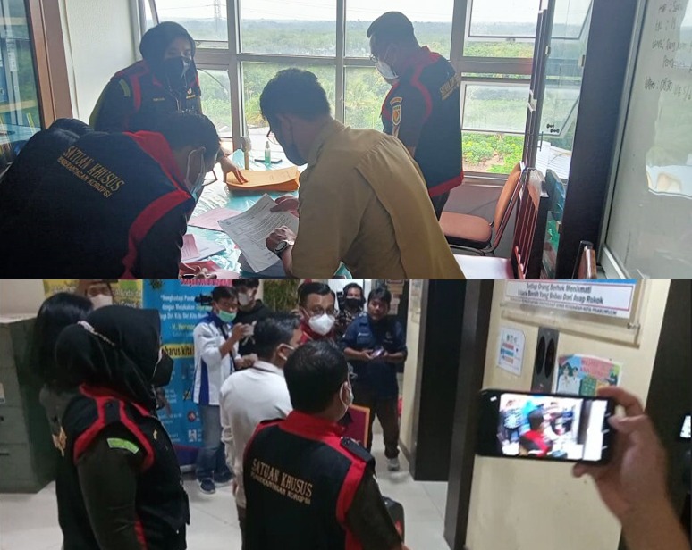 Terlihat tim penyidik yang dipimpin Kepala Seksi (Kasi) Pidsus Kejari Prabumulih, Wan Susilo SH MH dengan memakai rompi Satuan Khusus Pemberantasan Korupsi, mengambil dan mengamankan beberapa dokumen.