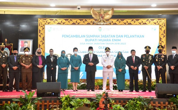 Dihadapan para hadirin termasuk Pangdam II Sriwijaya, Kapolda, Ketua DPRD Provinsi Sumatera Selatan serta beberapa bupati/walikota yang sempat hadir dan disaksikan oleh para tokoh masyarakat, kepala dinas/instansi, perwakilan Camat dan Kades se-Kabupaten Muara Enim.