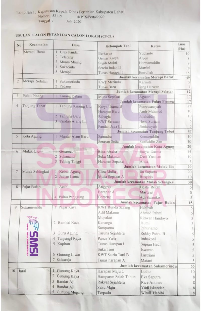 Ditambahkan Erwan, bantuan ini sudah dibagikan ke Kelompok tani berjumlah 45 kelompok yang tersebar di 15 Kecamatan dalam Kabupaten Lahat dengan luas tanam atau lahan keseluruhan 500 hektar.