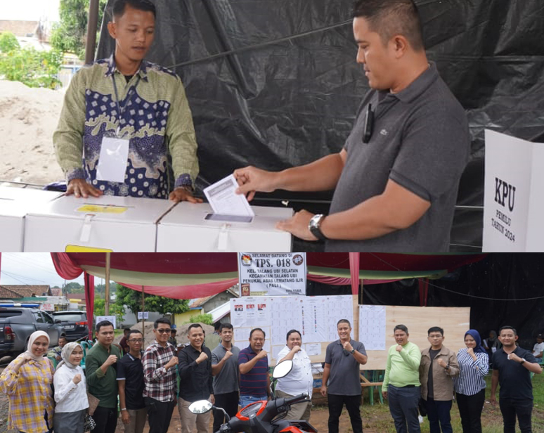 PALI SUMSEL, MLCI – Menggunakan Daftar Pemilih Tambahan (DPTb), Kepala Kejaksaan Negeri Kabupaten PALI, Agung Arifianto SH MH beserta jajarannya menyalurkan hak pilihnya di Tempat Pemungutan Suara (TPS) 18, TPS 20 dan TPS 23 kelurahan Talang Ubi Selatan, kecamatan Talang Ubi, kabupaten PALI, Rabu (14/02/2024).