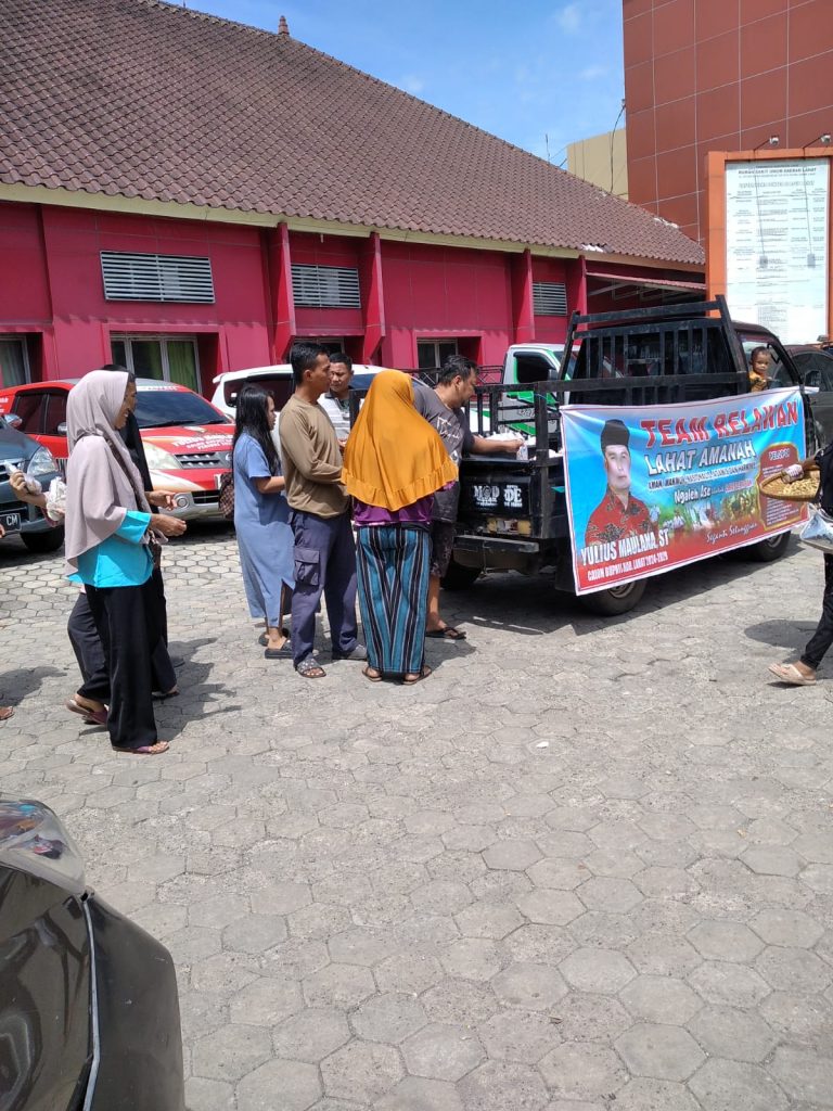 “Alhamdulillah, kegiatan berbagi dalan program Jum’at BERKAH kembali kita Gelontarkan di RSUD Lahat, intinya, kita akan terus lakukan Jum’at BERKAH ini untuk berbagi pada sesama umat yang membutuhkan tanpa memandang suku, ras dan agama, hal itu sesuai petunjuk dari Pak Yulius,” tambahnya saat dibincangi sedang membagikan Nasi Kotak.