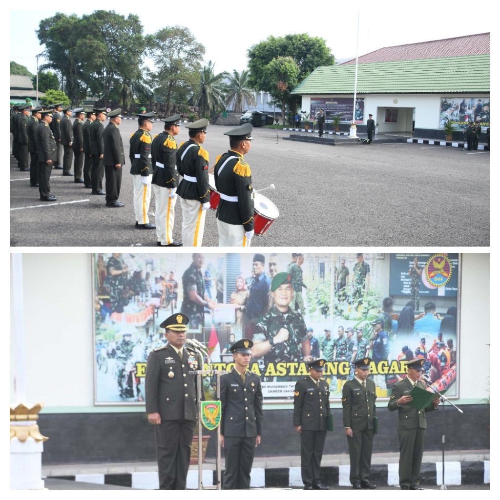 Terlihat saat upacara, bertindak selaku Irup Kasrem 044/Gapo Kolonel Inf Ahmad Hadi Al Jufri, Selasa (1/10/2024).