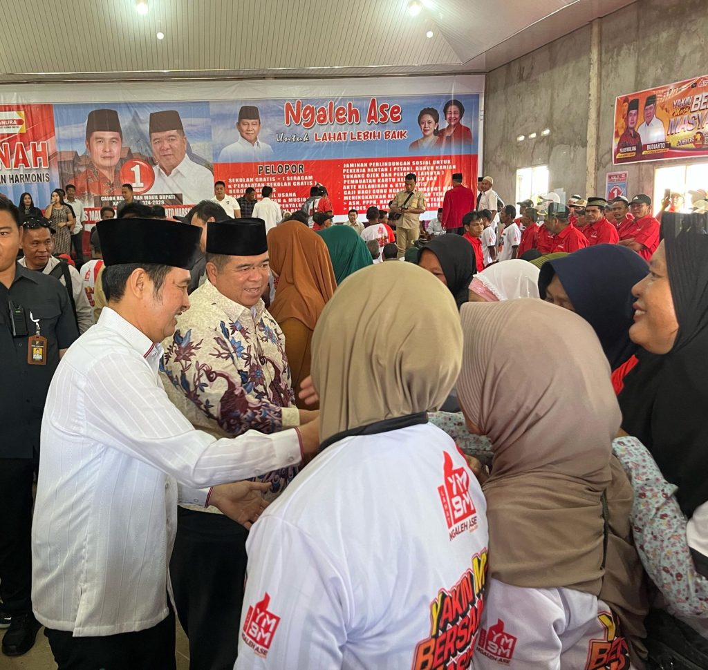 Kedatangan YM-BM di Desa Simpang Tiga Pumu Kecamatan Tanjung Sakti Pumu itu langsung disambut yel-yel dengan penuh semangat oleh ribuan masyarakat secara serentak, “YMBM – Bupati dan Wakil Bupati, YMBM – Ngaleh Ase, YMBM – Menang Menang Menang, Takbir – Allahuakbar, Coblos Nomor – Satuuuuuu”.