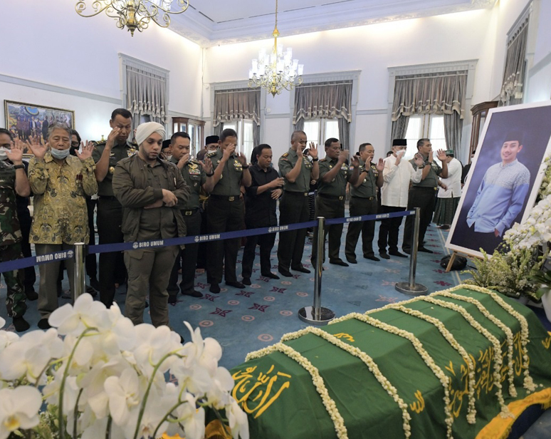 “Saya atas nama keluarga besar TNI AD mengucapkan turut berdukacita yang mendalam kepada keluarga Gubernur Jawa Barat Pak Ridwan Kamil. Kami mendoakan semoga arwah Almarhum diterima di sisi Allah SWT,” kata Jenderal Dudung.