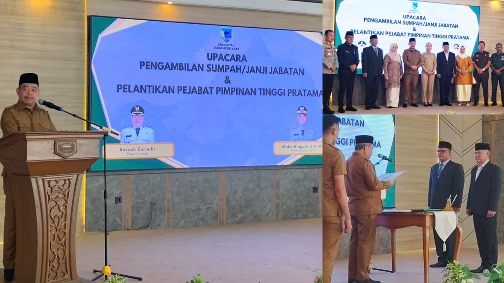 LAHAT SUMSEL, MLCI – Secara langsung Bupati Lahat H Bursah Zarnubi SE pimpin pengambilan sumpah janji jabatan dan pelantikan pejabat pimpinan tinggi Pratama di lingkungan Pemerintah Kabupaten Lahat. Senin (7/7).