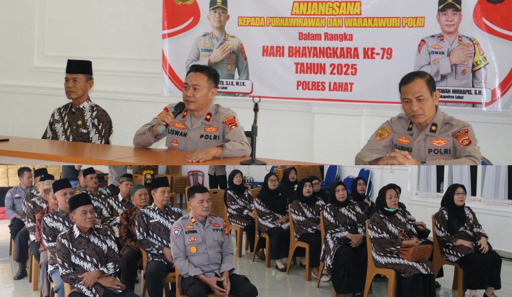 LAHAT SUMSEL, MLCI – Sebagai bentuk kepedulian dan penghargaan terhadap jasa para purnawirawan Polri dan Warakawuri, Polres Lahat gelar kegaiatan anjangsana dalam memperingati Hari Bhayangkara ke-79. Sabtu (21/6).