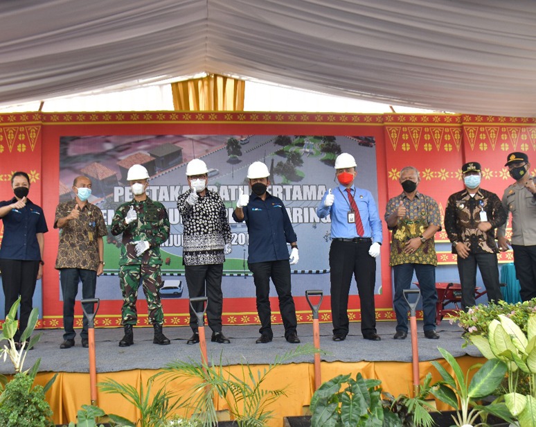 MUARA ENIM SUMSEL, MLCI – Dimulainya pembangunan Plaza Saringan ditandai dengan peletakan batu pertama yang dilakukan oleh Direktur Utama PT Bukit Asam Tbk (PTBA) Suryo Eko Hadianto bersama Bupati Muara Enim Nasrun Umar, di Kawasan Eks Pasar Buah Bantingan Tanjung Enim, Kamis sore (20/5/2021).