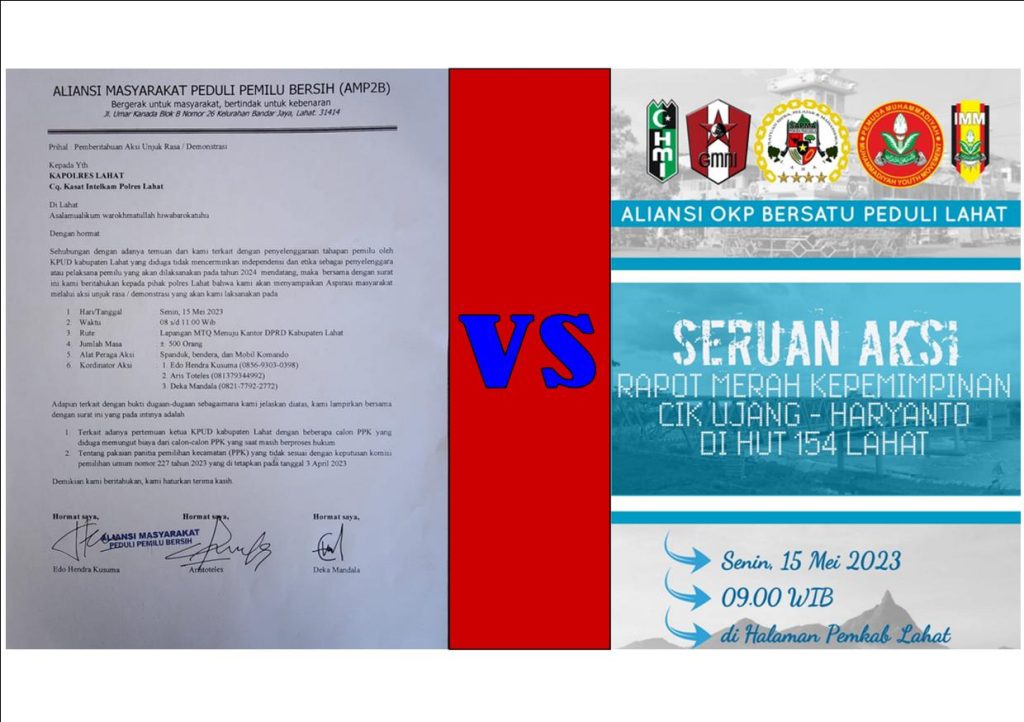 Sementara itu, ada juga kelompok Aliansi OKP Bersatu Peduli Lahat yang dikoordinir oleh Febriansyah dan Syaikh Amirullah yang akan menggelar demo di jam dan hari serta lokasi yang nyaris sama. Hanya saja, tuntutan dan aspirasi mereka yang berbeda dengan aspirasi yang akan disampaikan oleh AMP2B.