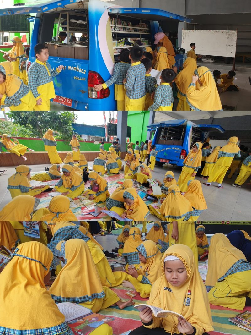 Mobil Dinas perpustakaan dan kearsipan Kabupaten Lahat diserbu Siswa/Siswi SDIT A Ba Ta Tsa