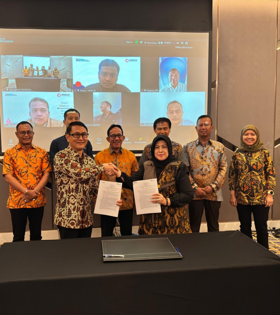 Arsal Ismail, Direktur Utama PT Bukit Asam Tbk (PTBA) didampingi jajaran direksi PTBA, tim Kementerian BUMN, dan tim Manajemen Portofolio Holding Industri Pertambangan MIND ID turut menyaksikan penandatanganan tersebut.