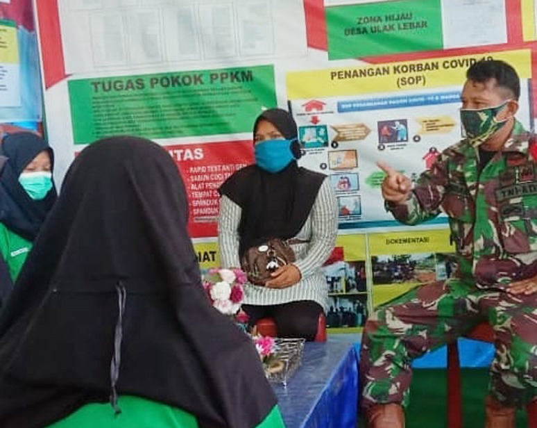 “Kedatangan Babinsa Koramil 405-12/Lahat, Pelda Rudianto bersama Kades Ulak Lebar, Evi Fitrianti memonitor kegiatan di Posko PPKM bertjuan agar tetap berstatus zona hijau,” sambung Danramil.