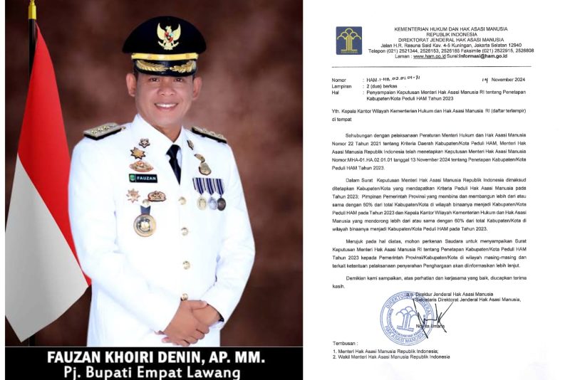 Surat Keputusan Menteri Hak Asasi Manusia RI tentang Penetapan Kabupaten/Kota Peduli HAM Tahun 2023 telah disampaikan kepada Pemerintah Provinsi Kabupaten/Kota di wilayah masing-masing yang salah satunya Pemerintah Kabupaten Empat Lawang.