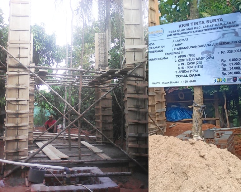 “Dengan total ketinggian tiang dan bak 8 meter serta besi yang digunakan, Besi 8,10 dan 12 mm. Untuk proses pengerjaan, 4 sertu campur pasir dan 1 sak semen, sambung Samsul.