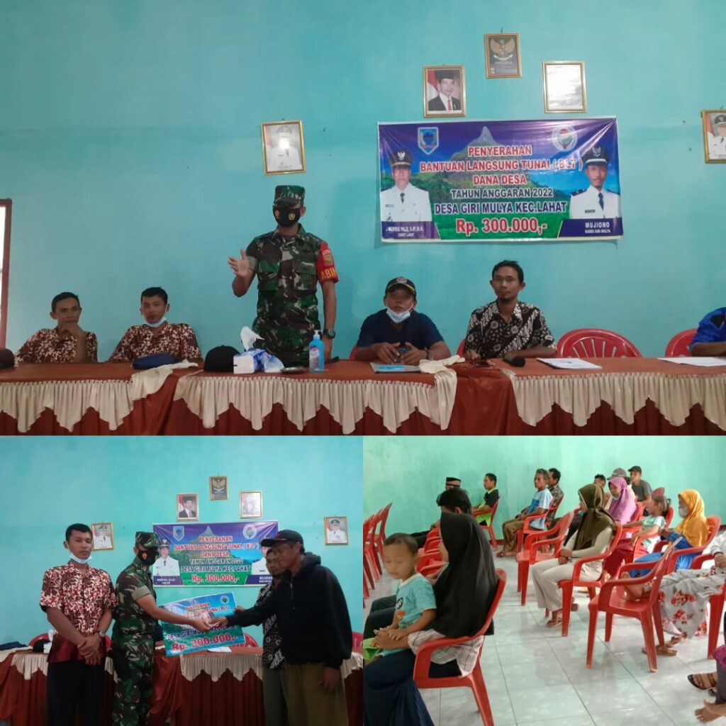 “Dalam penyaluran bantuan langsung tunai (blt) ke 86 kpm, yang berlangsung di Balai Desa Giri Mulya Lahat, Tampak Hadir, Kepala Desa (kades), Mujiono yang diwakili Sekdes besama perangkat, Ketua BPD Iwan bersama anggota, LPM, LPA dan 86 kpm didampingi Banbinsa Koptu, Jono Tri FR dari koramil 405/12 lahat.