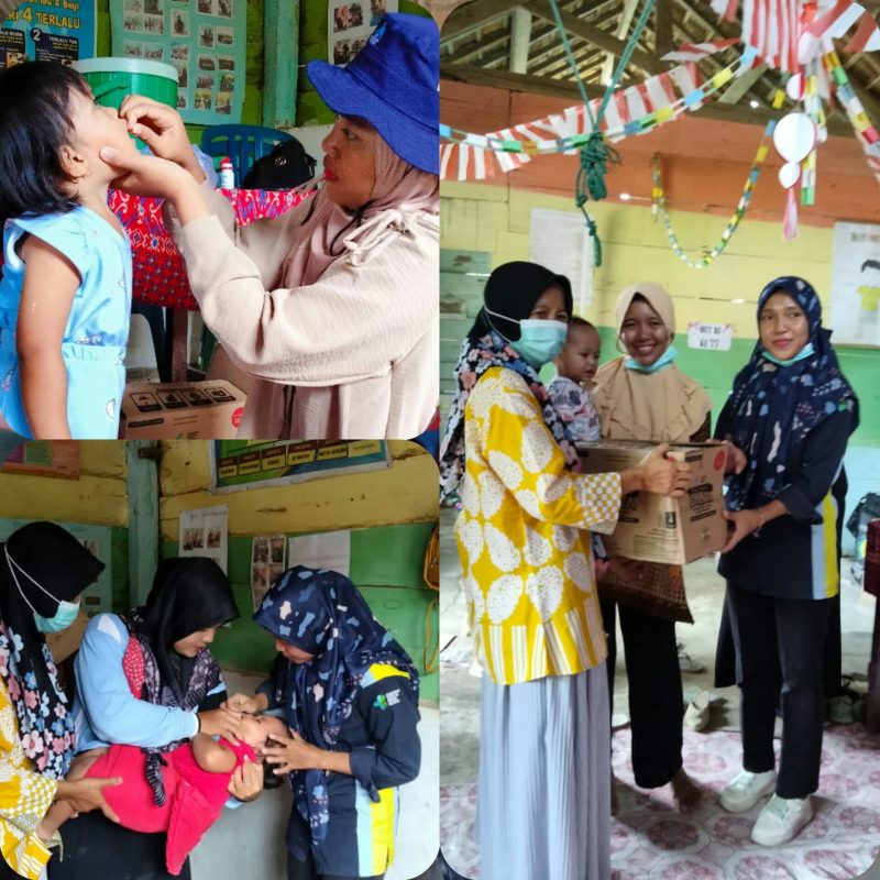 Setelah selesai pemeriksaan semua anak anak yang ikut posyandu di beri obat Vitamin A dan Obat Cacing untuk anak usia 6 bulan sampai 59 bulan, kemudian diteruskan dengan pemberian makanan tambahan untuk ibu Hamil.**