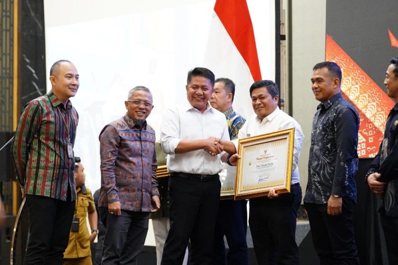 Penyerahan penghargaan tersebut langsung oleh Gubernur Sumsel Dr H Herman Deru SH kepada Kades Tanjung Payang Sapri disela acara Rapat Koordinasi Daerah Evaluasi Survei Monitoring dan Evaluasi (Monev) MBG Tahap II Tahun 2025 di Hotel Santika Premier Palembang, senin 8 Desember 2025 lalu.