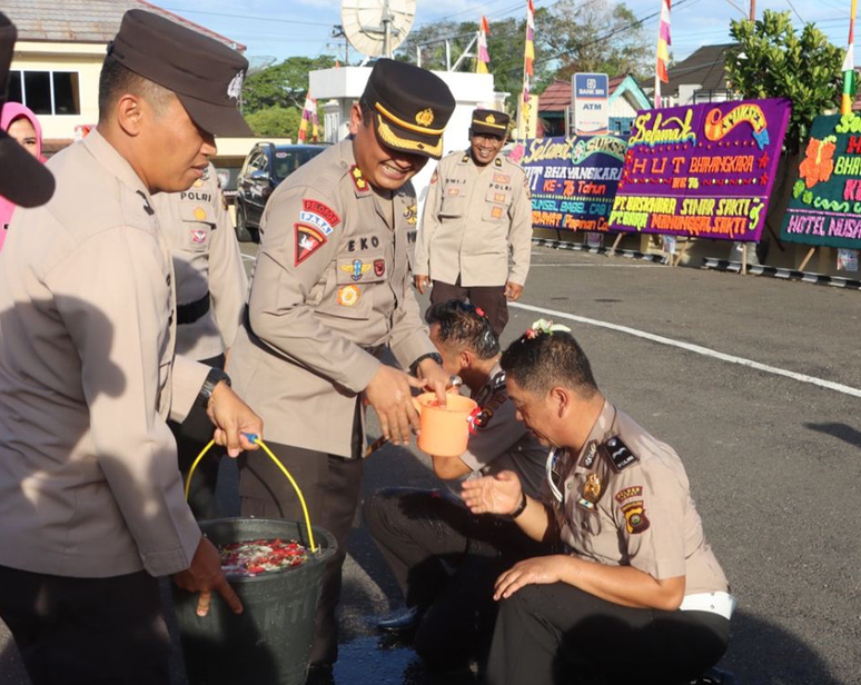 Acara di lanjutkan dengan tradisi penyiraman bunga dan ucapan selamat kepada anggota yang baik pangkat dan di awali oleh Kapolres lahat dan di lanjutkan dengan PJU, bhayangkari dan personel Polres Lahat.*****