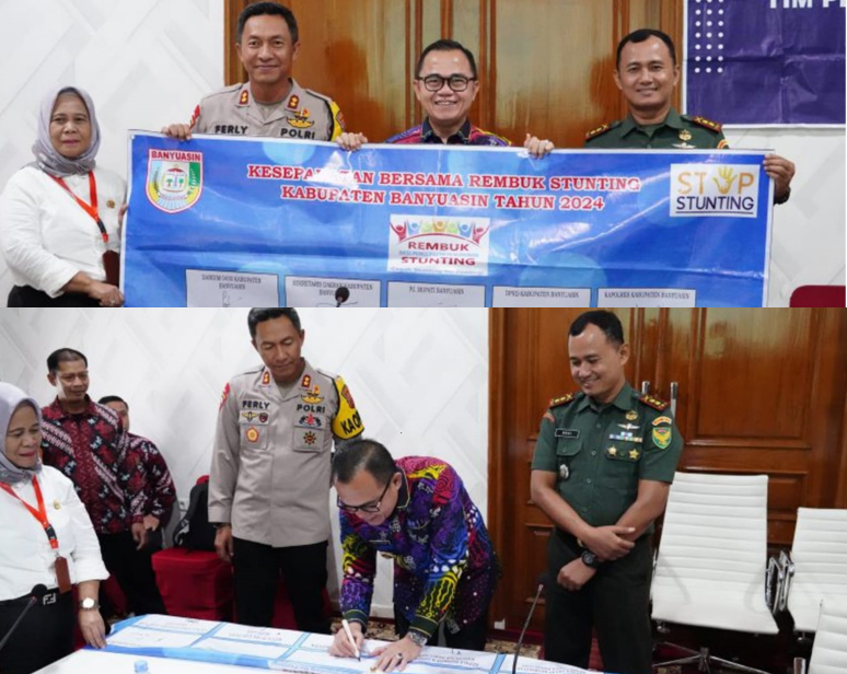 Diketahui, dalam rapat tersebut juga dilaksanakan penandatanganan secara simbolis kesepakatan dan komitmen bersama rembuk stunting Kabupaten Banyuasin yang dilakukan oleh Pj Bupati Banyuasin, Kapolres, Dandim, dan KPD Banyuasin.***
