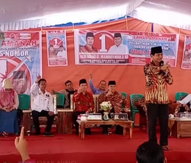 LAHAT SUMSEL – MLCI – Mantan Wakil Bupati Lahat Periode 2013-2018 Marwan Mansyur,SH.,MM secara langsung didepan Ribuan Masyarakat mengajak untuk mendukung penuh pasangan calon Bupati dan Wakil Bupati Lahat Yulius Maulana,ST dan DR H Budiarto Marsul,SE.,M.Si.