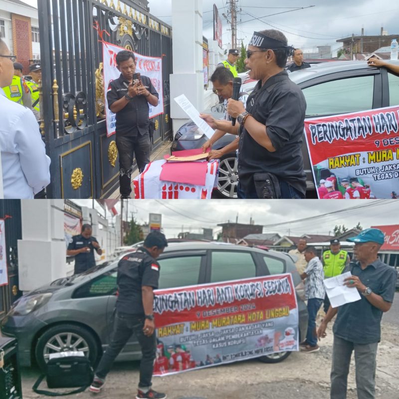 LUBUK LINGGAU SUMSEL, MLCI – Terlihat massa berasal aktifis kota Lubuklinggau yakni Gerakan Sumpah Undang-undang (GSUU) dan Penggiat Anti Korupsi mendemo gedung Kejaksaan Negeri (Kejari) Lubuklinggau untuk meminta penjelasan terkait kasus dugaan tindak pidana kasus korupsi Pembangunan Gedung Taman Olahraga Muara Kati (TOM) yang berlokasi di Desa Muara Kati Lama Kecamatan TPK Kabupaten Musi Rawas dengan nilai anggaran Rp. 521.618.025.29 (Lima Ratus Dua Puluh Satu Juta Enam Ratus Delapan Belas Ribu Dua Puluh Lima koma Dua Puluh Sembilan Rupiah) dari nilai proyek 2.123.000.000 (Dua Milyar Seratus Dua Puluh Tiga Juta Rupiah) yang dikerjakan oleh CV Rizky Ananda pada dinas PU CKTR-P Kabupaten Musi Rawas, APBD tahun 2023, Senin (23/12/24) sekitar pukul 10.00 Wib.