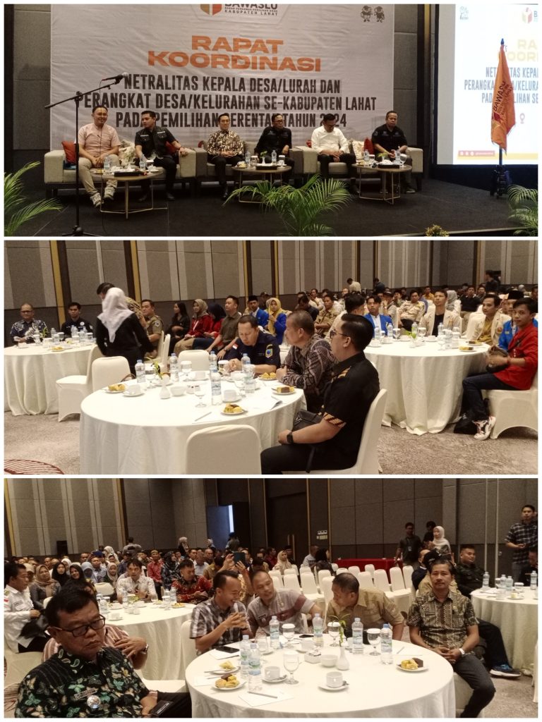 LAHAT SUMSEL – MLCI – Bawaslu Kabupaten Lahat Mengelar Rapat Kordinasi Netralitas Kepala Desa/Lurah Se-Kabupaten Lahat Pada Pemilihan Serentak Tahin 2024, Jum’at 15 November 2024 Berlangsung di Ruang Ballroom Hotel Santika.