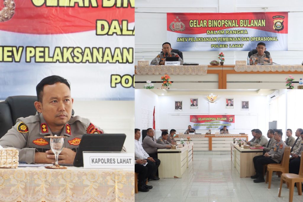 LAHAT SUMSEL, MLCI – Pembinaan dan Operasional (Bin Opsnal) bulanan dalam rangka Analisa dan Evaluasi (Anev) pelaksanaan pembinaan dan operasional jajaran Polres Lahat secara langsung dipimpin Kapolres AKBP Novi Edyanto SIK MIK. Senin (2/6)
