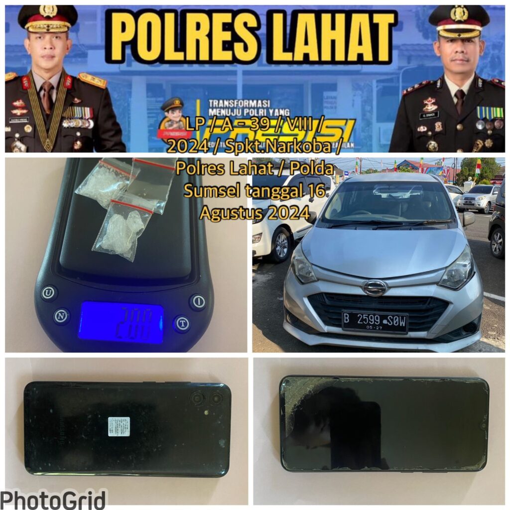 Lalu, tambah Lispono, atas perintah Kasatres Narkoba kepada anggota dilakukan lidik orang dan tempat yang tepatnya pada hari Selasa 20 Agustus 2024 sekira jam 15.13 Wib bertempat di TKP halaman parkir RSUD Lahat telah tertangkap tangan tersangka inisial AT (32) warga Kelurahan Gunung Gajah Kecamatan Lahat.