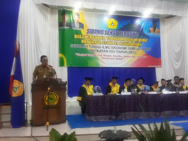 Kabupaten Lahat – SUMSEL – MLCI – Bupati diwakili Sekda Lahat menghadiri sidang senat terbuka dalam rangka Yudisium dan Wisuda sebanyak 107 Mahasiswa STIE Serelo Lahat angkatan ke XXV tahun 2022 dengan menyandang gelar SE. Acara yang mengambil tema “Menjadi Lulusan Yang Unggul, Beretika, Berkearifan Lokal dan Berwawasan Global” tersebut digelar di Gedung Kesenian Lahat. Selasa,13/12/2022