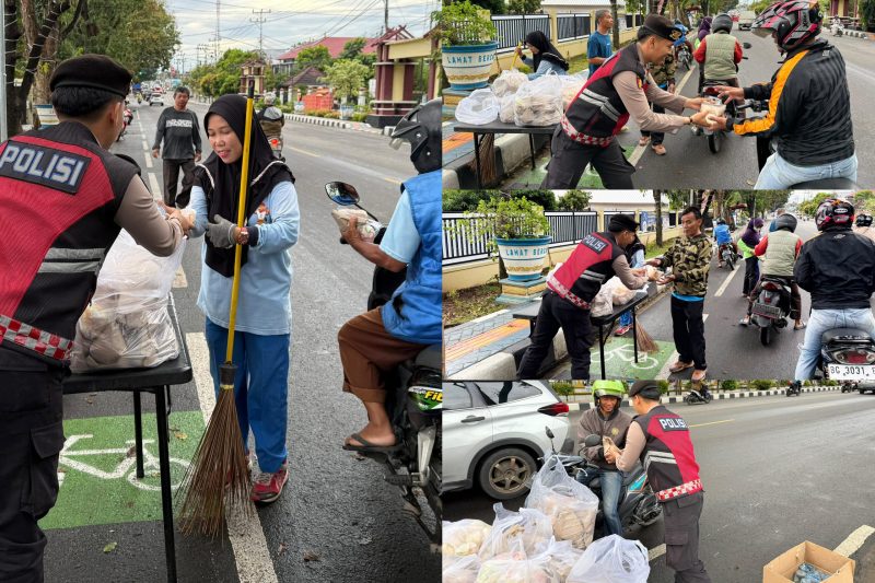 Selain berbagi makanan, personel Sat Samapta juga menyempatkan diri berinteraksi dengan masyarakat, mendengarkan keluhan, serta memberikan imbauan kamtibmas agar lingkungan tetap aman dan kondusif.