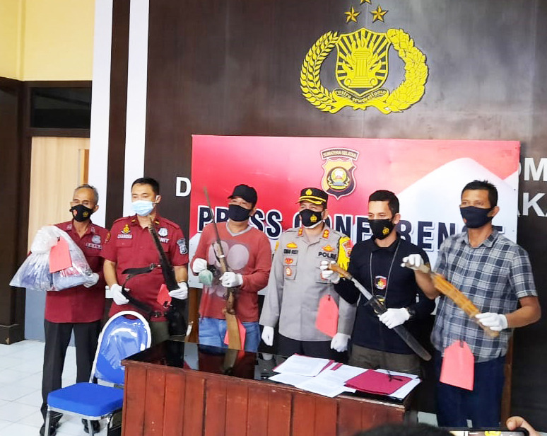 “Kemudian I ini mendatangi petugas keamanan PT SMS dan melakukan pembacokan,” jelas Kapolres Lahat, AKBP Achmad Gusti Hartono SIK didampingi Kasat Reskrim, AKP Kurniawi HB SIK, Kanit Pidum IPDA Buddi Agus SE, Kanit Pidsus IPDA serta Paur Humas IPTU Hidayat saat gelar Confrence Pers. Rabu (5/5/2021) di Mapolres Lahat.