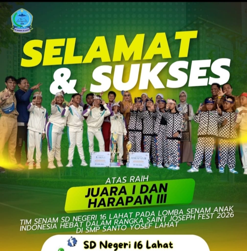 LAHAT SUMSEL – MLCI – Peserta didik SD Negeri 16 Lahat, Tim 1 berhasil meraih juara 1 dan Tim 2 berhasil juara harapan 3 diLomba Senam anak Indonesia hebat dalam rangka Pesta Nama Pelindung Sekolah Santo Yosef Lahat (Saint Joseph Fest 2026) berlangsung dihalaman SMP Santo Yosef Lahat. Pada hari Senin, 9/02/2026
