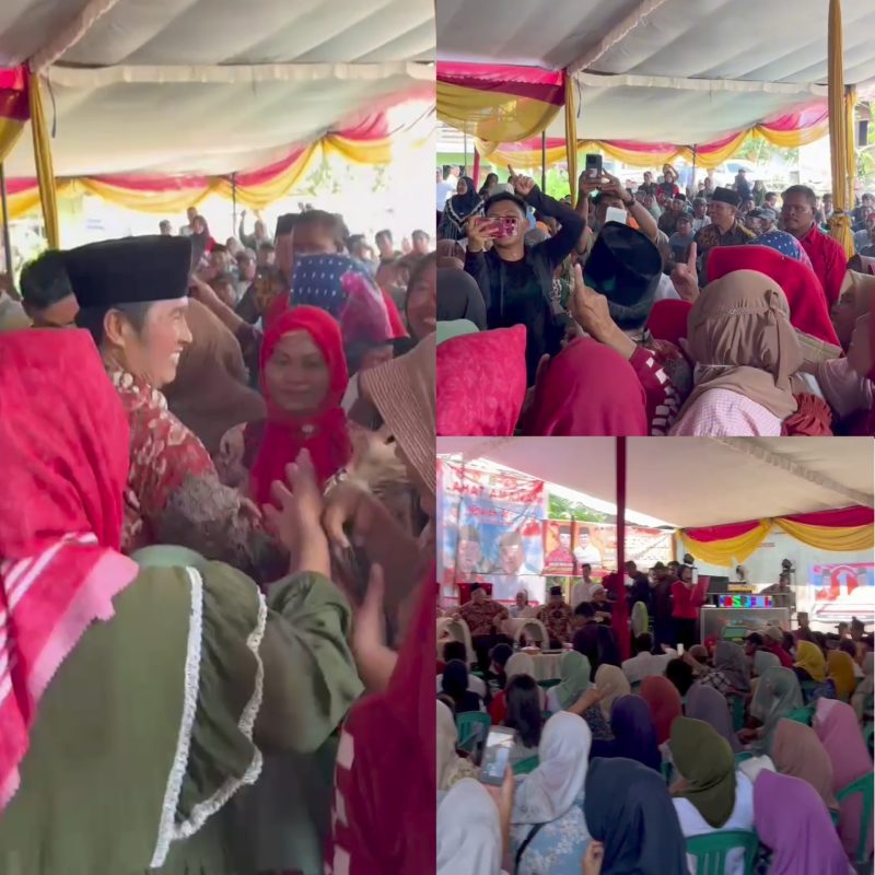 “Tanggal 27 November 2024 nanti, setuju coblos nomor urut 1?” pinta Nopan dan langsung dijawab serentak, “Setujuuuuuu”.