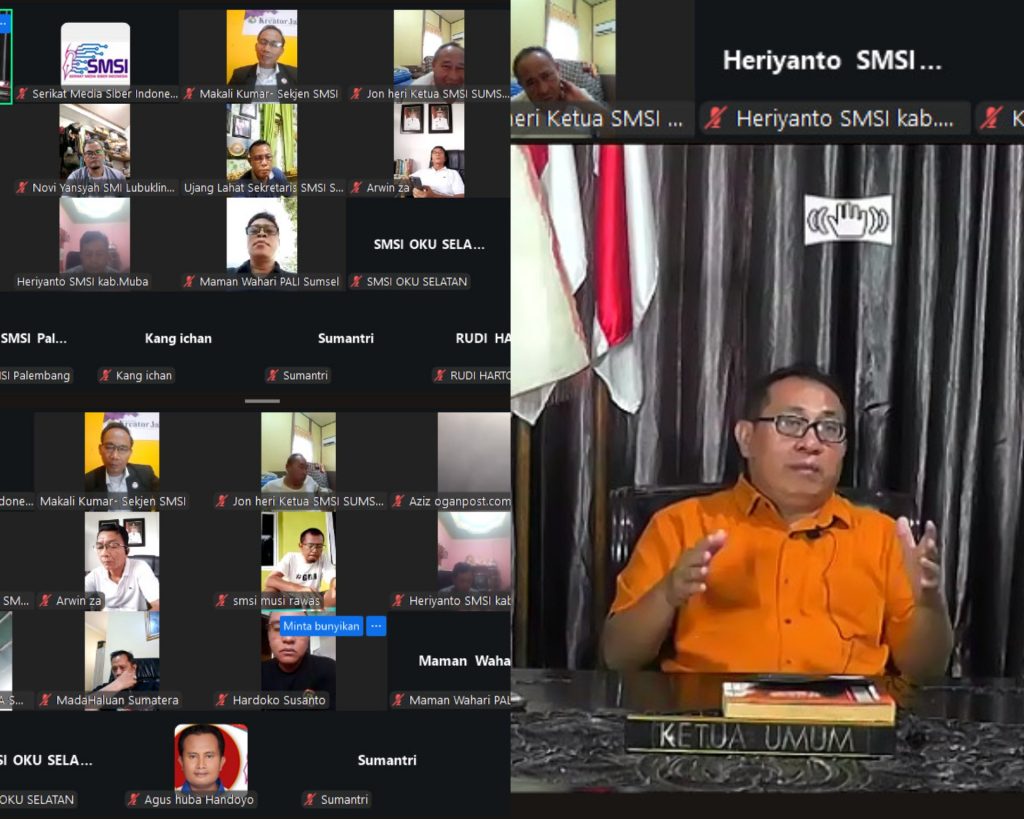 Rapat yang digelar secara daring via aplikasi zoom meeting kali ini, menjadi sarana koordinasi dan konsultasi terkait capaian pelaksanaan program prioritas SMSI di tingkat daerah.