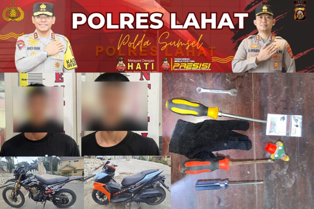 “Saat ini para tersangka tersebut dan barang bukti 1 obeng bergagang warna kuning hitam, 1 obeng bergagang warna merah hitam, 1 obeng bergagang warna biru, 1 sarung tangan warna hitam, 1 kunci ring, 1 unit motor aerox warna biru orange, 1 unit motor CRF warna hitam hijau dan 1 helai celana Jeans warna biru telah diamankan Unit Pidum Satreskrim Polres Lahat guna penyidikan lebih lanjut,” pungkas Lispono.*** (Humres)