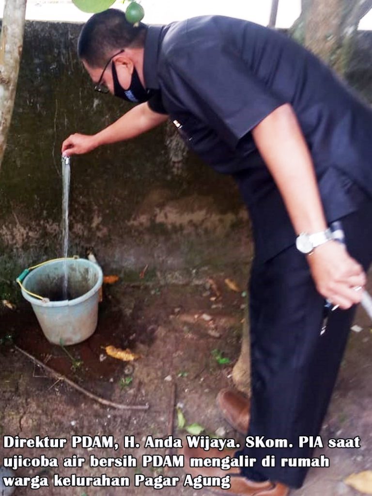 “Alhmdulillah hari ini kami telah menguji coba aliran air PDAM di salah satu perumahan Kelurahan Pagar Agung yang berbatasan langsung dengan RT 13, 14, dan RT 15 RW 04 Kelurahan Gugah,” ujar Anda saat dihubungi media ini. Senin (14/12/2020).