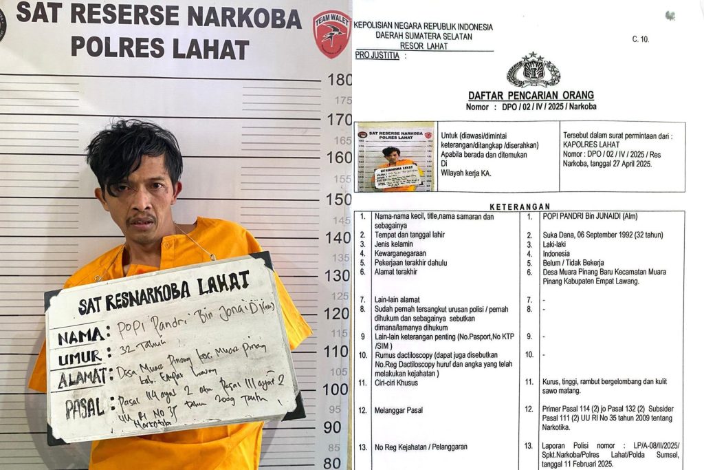 Tahanan kasus narkoba tersebut bernama Popi Pandri warga Desa Muara Pinang Baru Kecamatan Muara Pinang Kabupaten Empat Lawang dan melarikan diri Rutan Polres Lahat pada Minggu 27 April 2025 lalu.