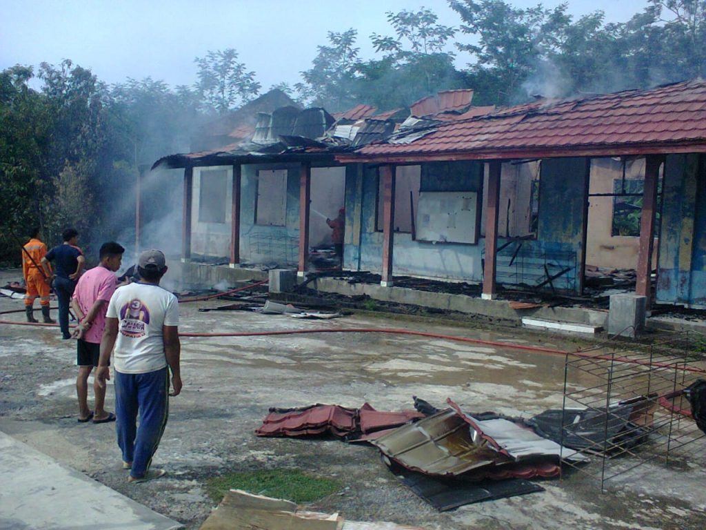 “Untuk kerugian pihak sekolah belum bisa mentafsir karna harus ahlinya, tetapi untuk sementara kerugian sekolah ada 3 ruang kelas yaitu kelas 7, 8, 9, beserta 1 kantin dan seluruh alat-alat mobiler yang ada dikelas, untuk per kelas terdiri dari 40 pasang kursi dan meja,” pungkas Andi Ernawan.***