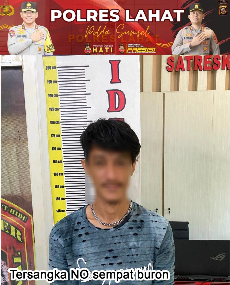 “Setelah saat itu dilakukan pengembangan, ternyata masih ada satu lagi tersangka yang berhasil kabur dan dinyatakan buron. Yakni NO usia 38 tahun alamat KTP Provinsi Papua Tengah dan alamat sekarang di Desa Manggul Kecamatan Lahat,” terang Lispono.