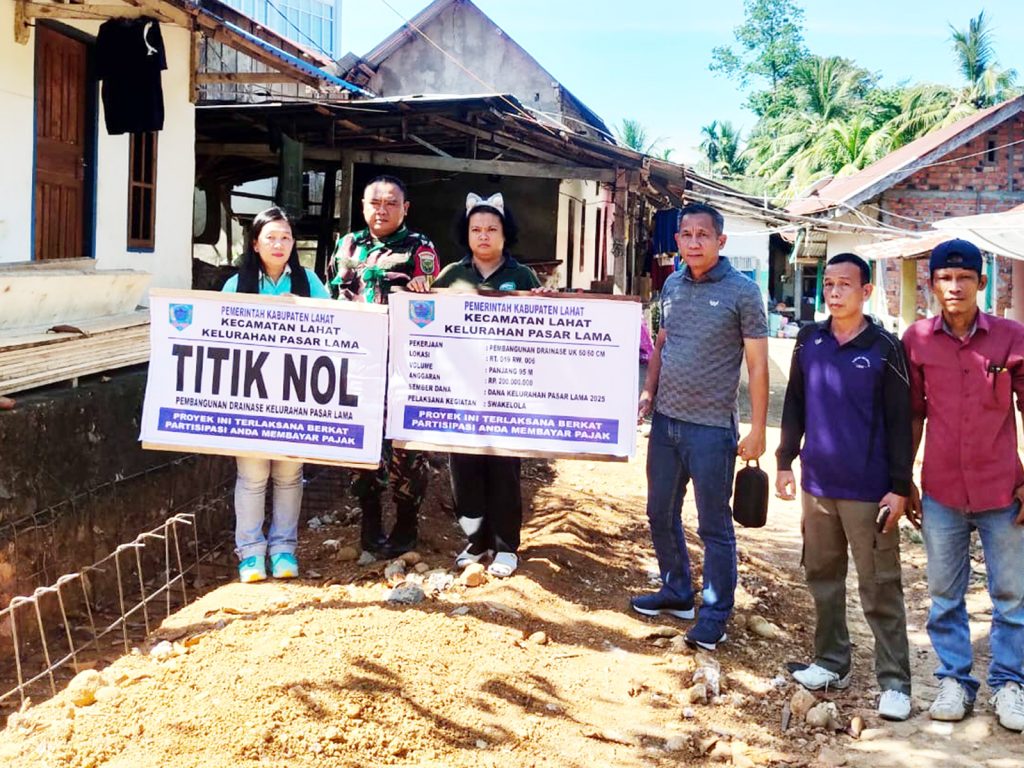 LAHAT SUMSEL, MLCI – Awal pembangunan proyek atau Titik Nol di Kelurahan Pasar Lama secara langsung ditinjau oleh Camat Lahat, Isna Abi Darda BA bersama Babinsa, Lurah Pasar Lama Junaidi serta Ketua RT 19 RW 06.