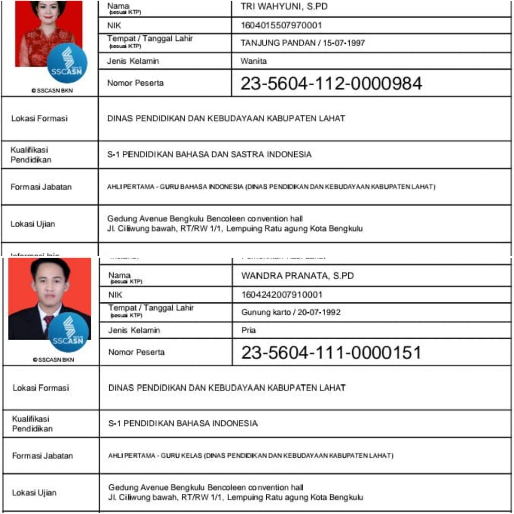Seleksi CASN 2023 dari Kecamatan Tanjung Sakti (Pumi) Kabupaten Lahat Sumatra Selatan.
